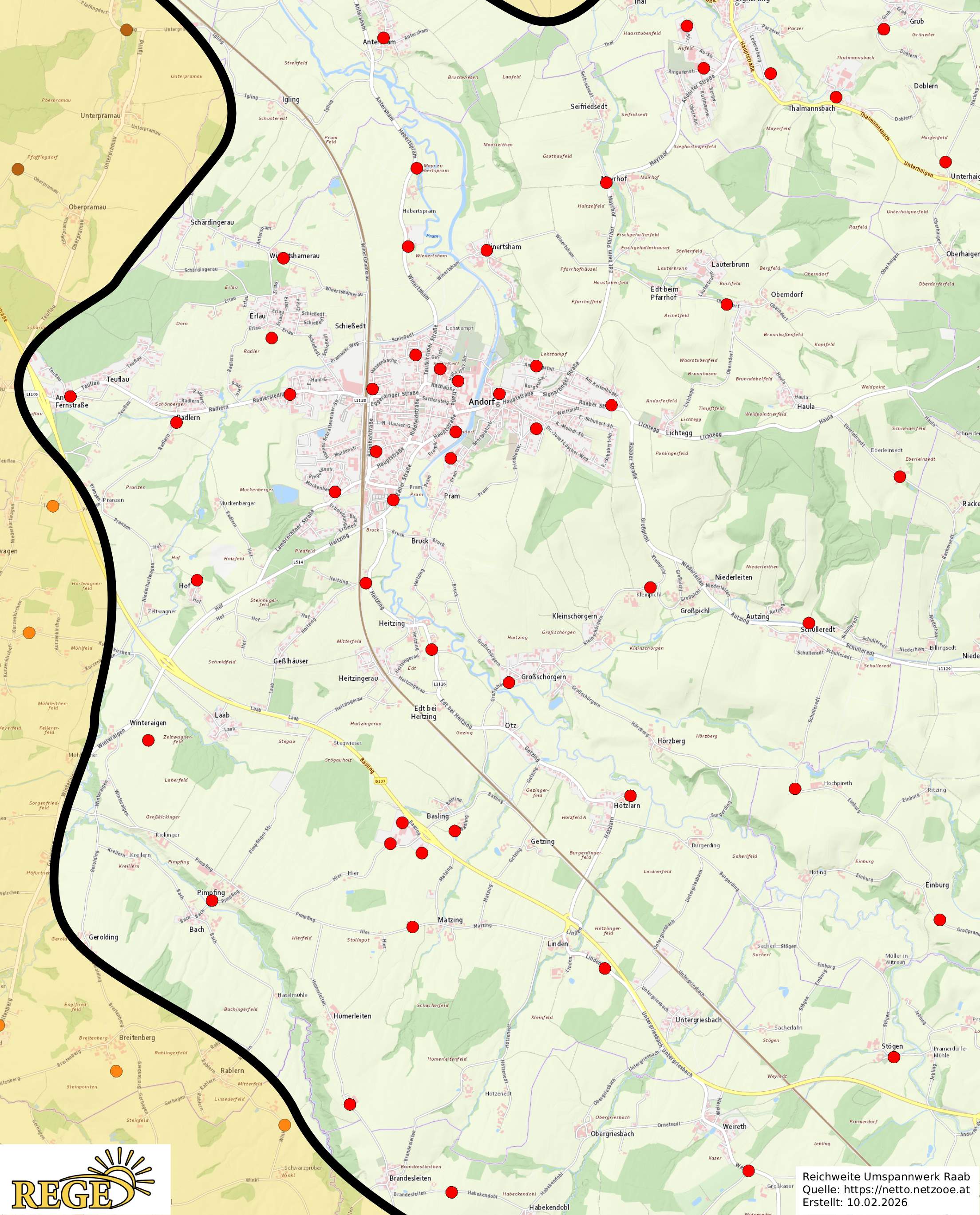 Wenn Dein Zählpunkt zu einem der rot markierten Trafostationen der Netz OÖ GmbH gehört, dann kannst Du grundsätzlich bei der REGE teilnehmen