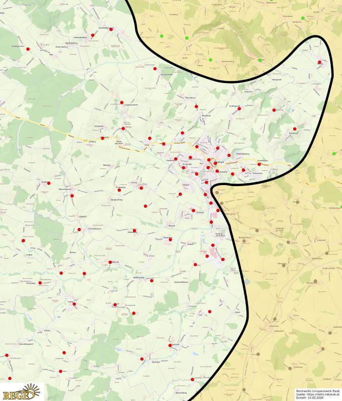 Wenn Dein Zählpunkt zu einem der rot markierten Trafostationen der Netz OÖ GmbH gehört, dann kannst Du grundsätzlich bei der REGE teilnehmen