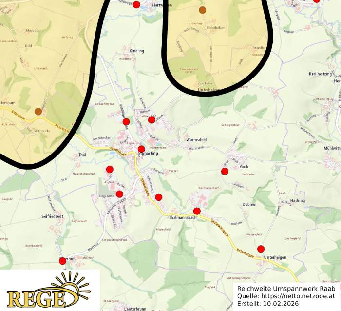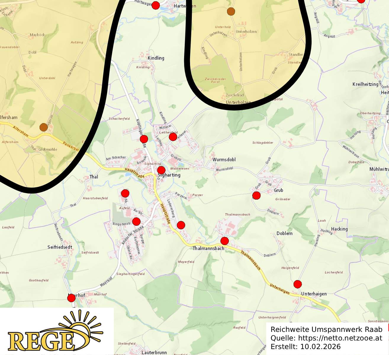 Wenn Dein Zählpunkt zu einem der rot markierten Trafostationen der Netz OÖ GmbH gehört, dann kannst Du grundsätzlich bei der REGE teilnehmen